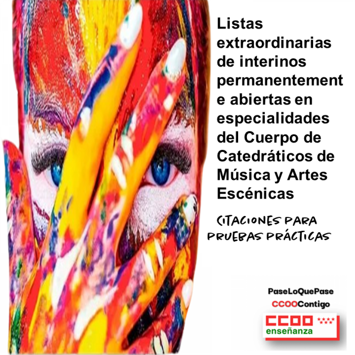 Listas extraordinarias de interinos permanentemente abiertas en especialidades del Cuerpo de Catedráticos de Música y Artes Escénicas. Citaciones para pruebas prácticas.