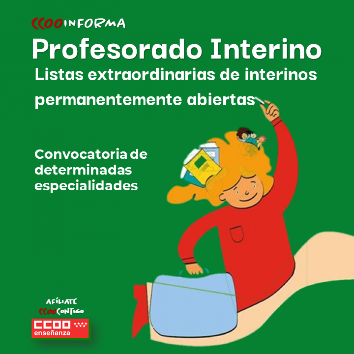 Listas extraordinarias de interinos permanentemente abiertas. Convocatoria de determinadas especialidades.