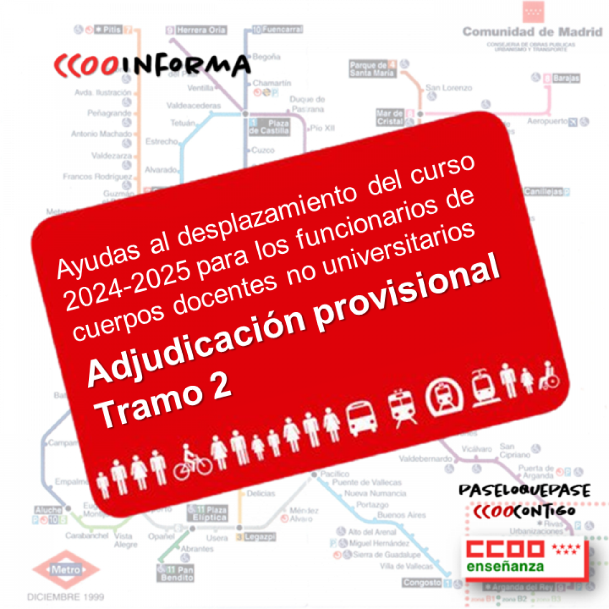 Se publica la relación provisional de adjudicatarios del Tramo 2 de las ayudas para el desplazamiento correspondientes al curso escolar 2024-2025, destinadas a los funcionarios de cuerpos docentes no universitarios al servicio de la Comunidad de Madrid.