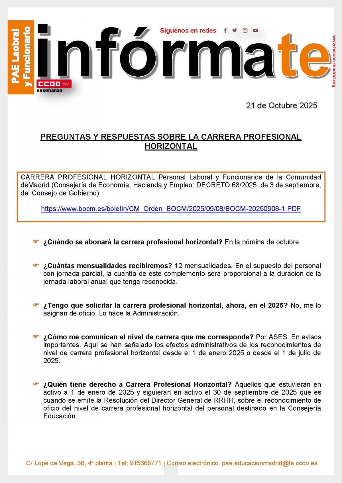 CARRERA PROFESIONAL HORIZONTAL Personal Laboral y Funcionarios de la Comunidad deMadrid (Consejería de Economía, Hacienda y Empleo: DECRETO 68/2025, de 3 de septiembre, del Consejo de Gobierno)
