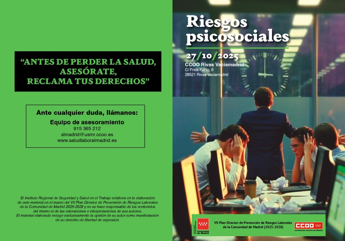 En CCOO de Madrid tenemos un objetivo claro que pasa por proteger la salud de las trabajadoras y de los trabajadores, así como llevar la democracia y la justicia a los centros de trabajo, y para ello hay que intervenir frente a los riesgos psicosociales. Pero no es suficiente exigir la evaluación de riesgos psicosociales en todas las empresas, sino que debemos concretar en la planificación de la actividad preventiva medidas que vayan dirigidas al origen del riesgo, es decir, cambiando los aspectos nocivos de la organización del trabajo.