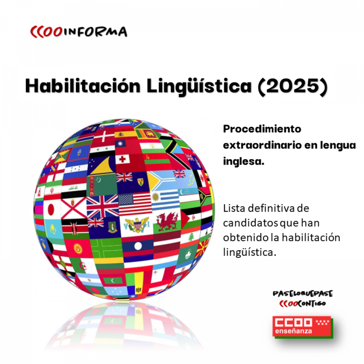 Se aprueba la lista definitiva de los candidatos que han obtenido la habilitación lingüística en lengua inglesa, para el desempeño de puestos bilingües en centros docentes públicos de la Comunidad de Madrid, convocado por Resolución conjunta de 21 de julio de 2025.