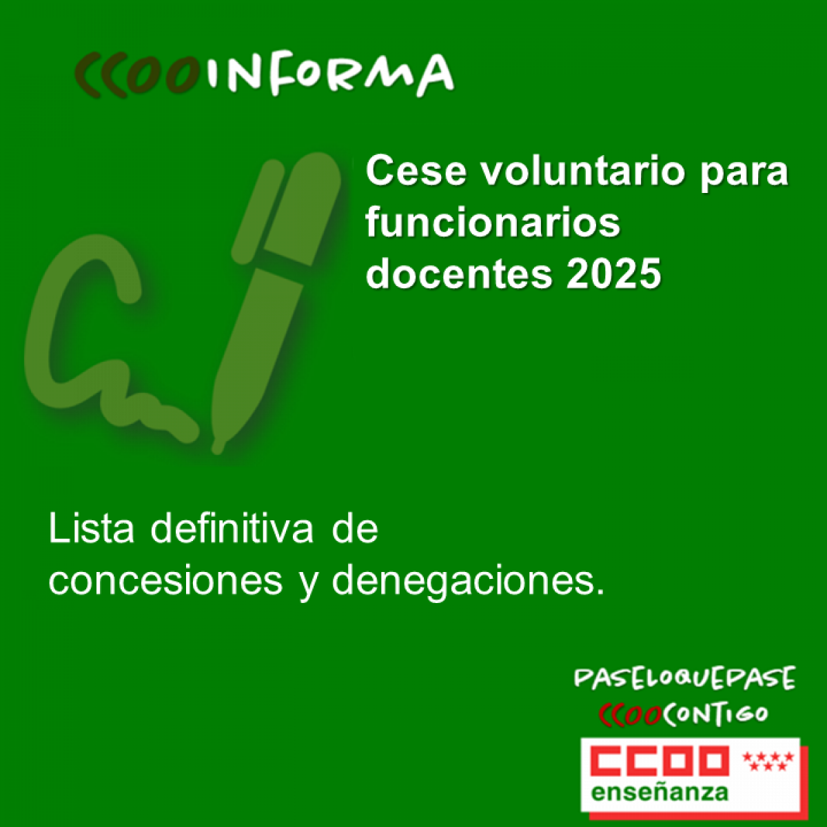 Cese voluntario para funcionarios docentes. Lista definitiva de concesiones y denegaciones.