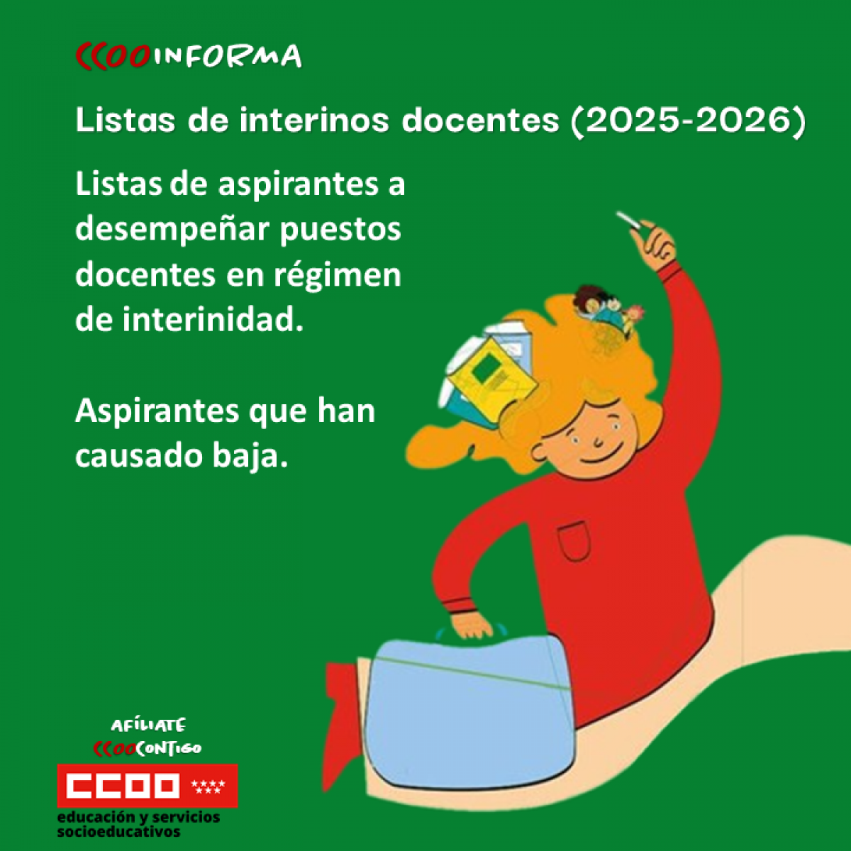 Listas de aspirantes a desempeñar puestos docentes en régimen de interinidad. Aspirantes que han causado baja.