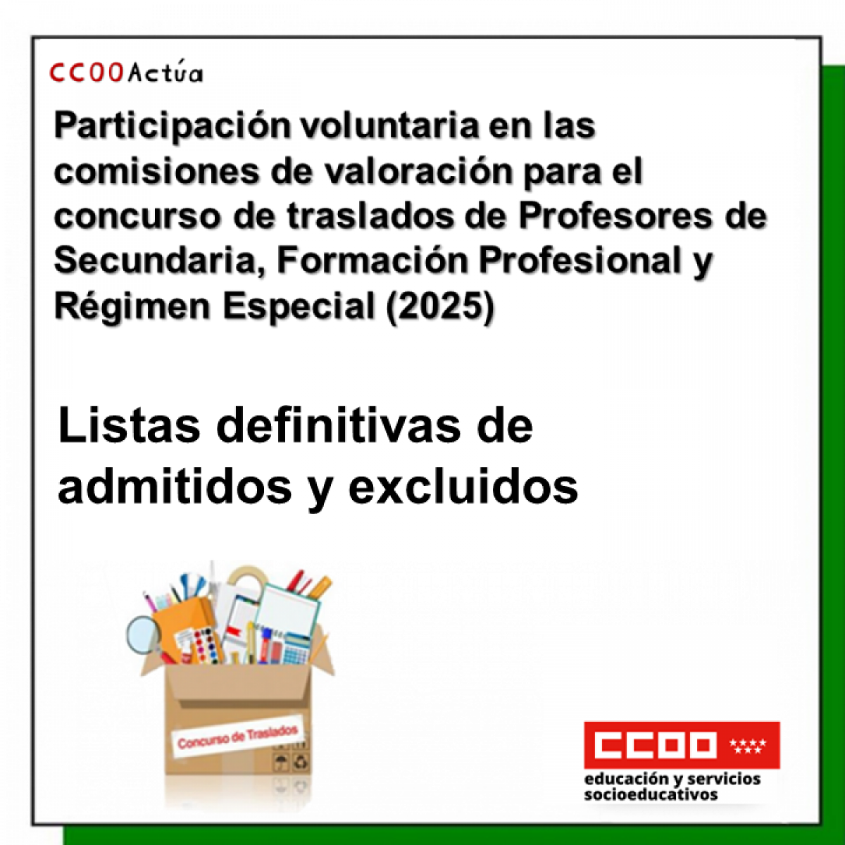 Participación voluntaria en las comisiones de valoración del concurso de traslados de Secundaria, FP y RE. Listas definitivas de admitidos y excluidos.