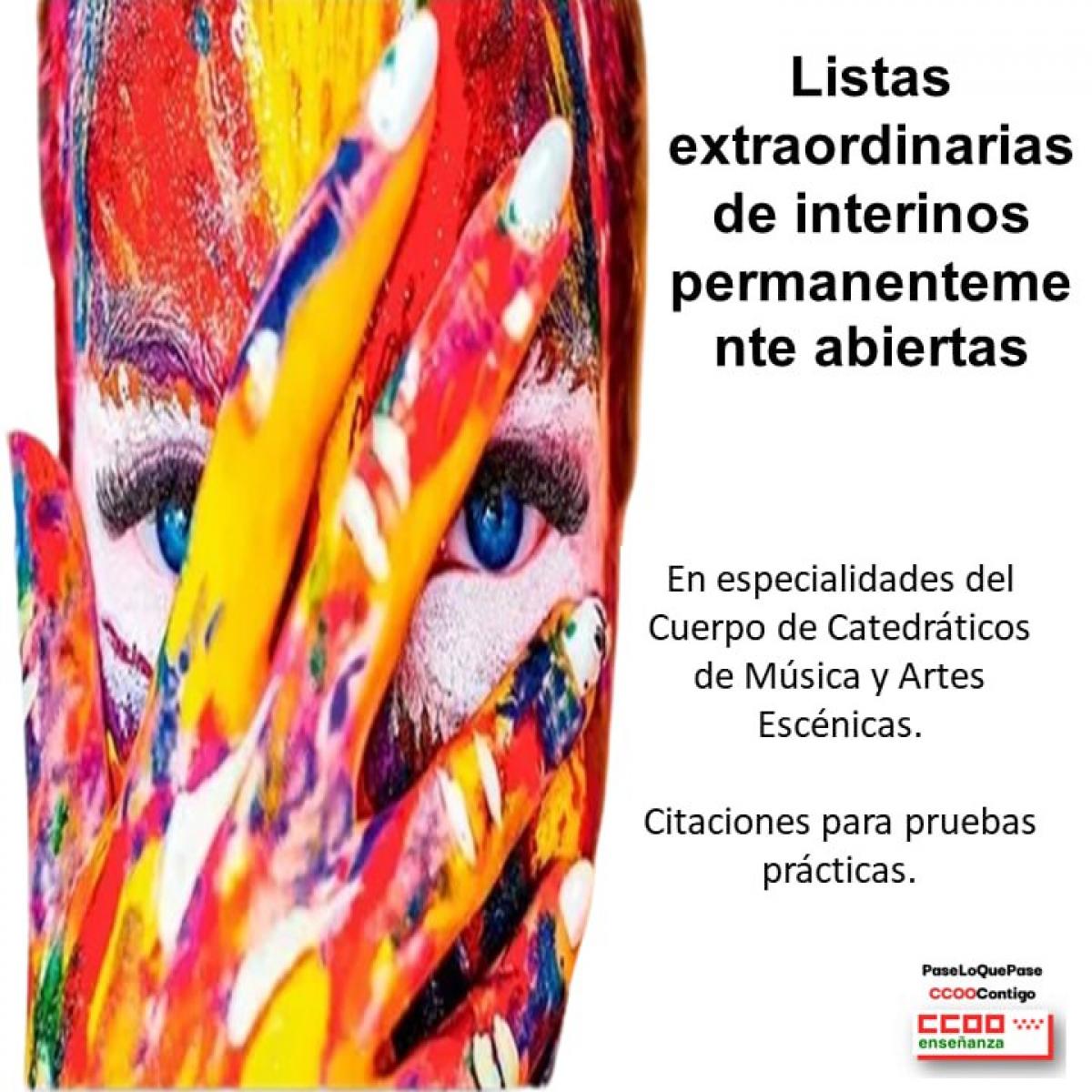 Listas extraordinarias de interinos permanentemente abiertas en especialidades del Cuerpo de Catedráticos de Música y Artes Escénicas. Citaciones para pruebas prácticas.