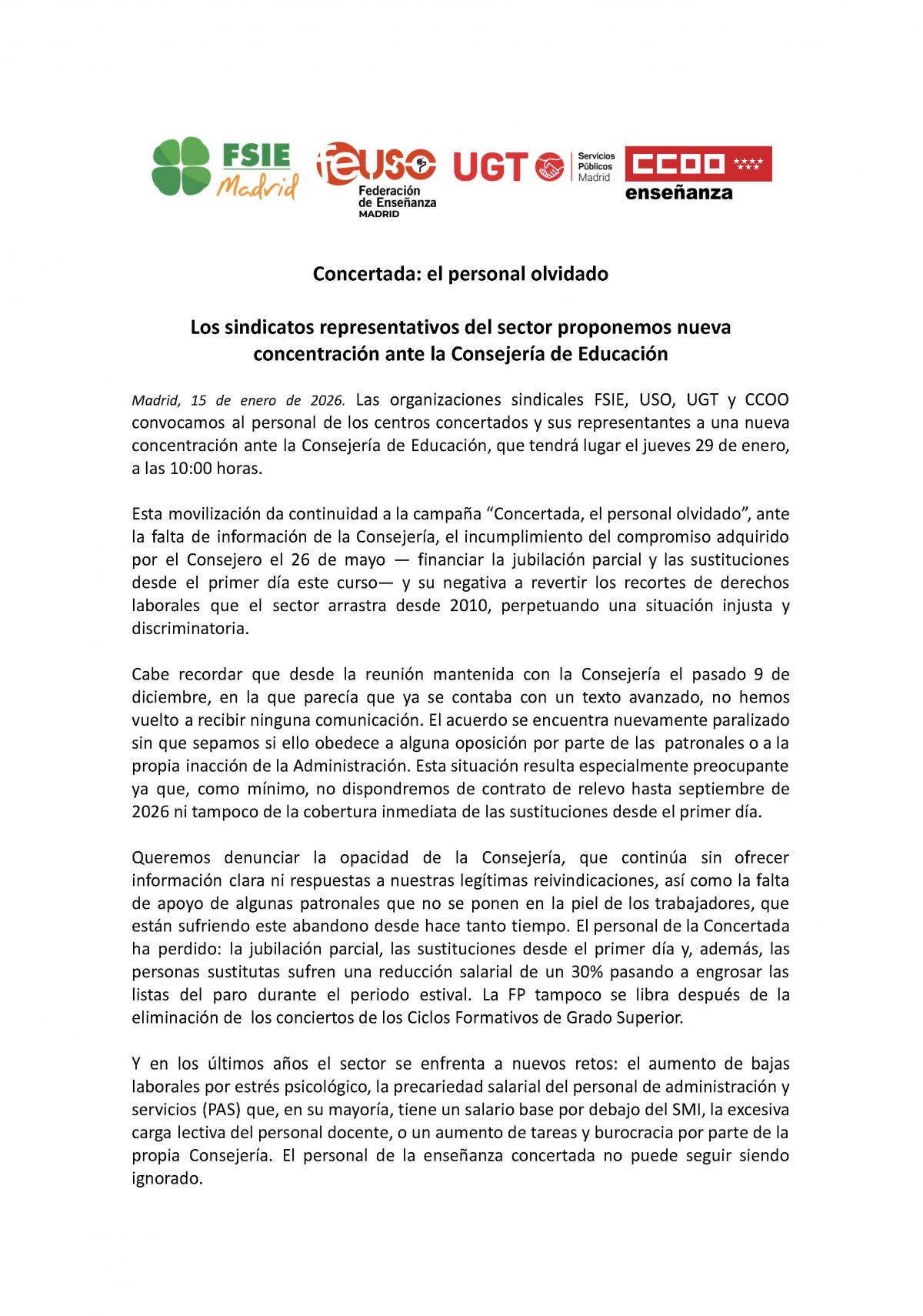 ¡CONCERTADA, EL PERSONAL OLVIDADO!