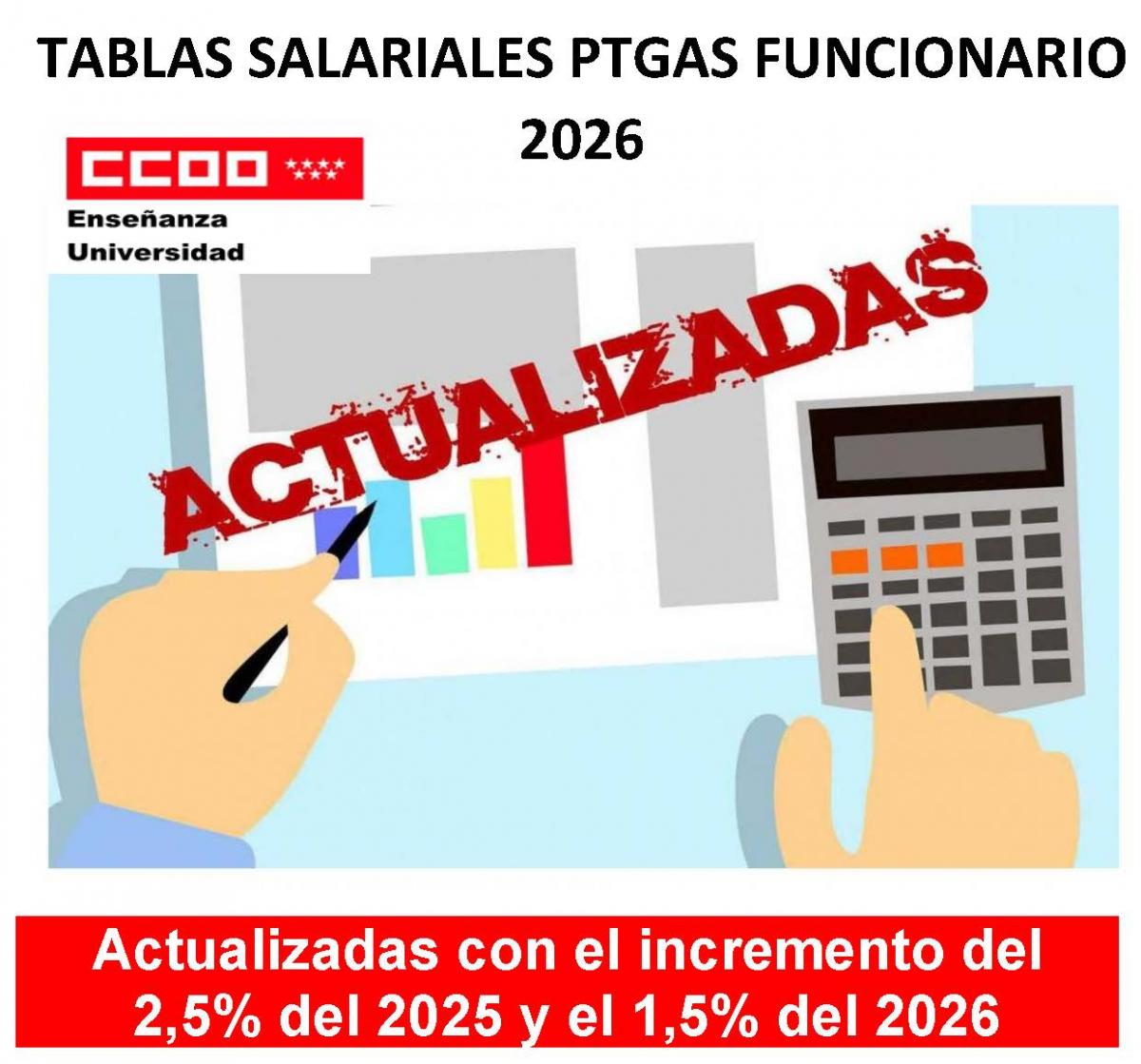 Tablas salariales PTGAS Funcionario actualizadas con el incremento del 2,5% del 2025 y el 1,5% del 2026