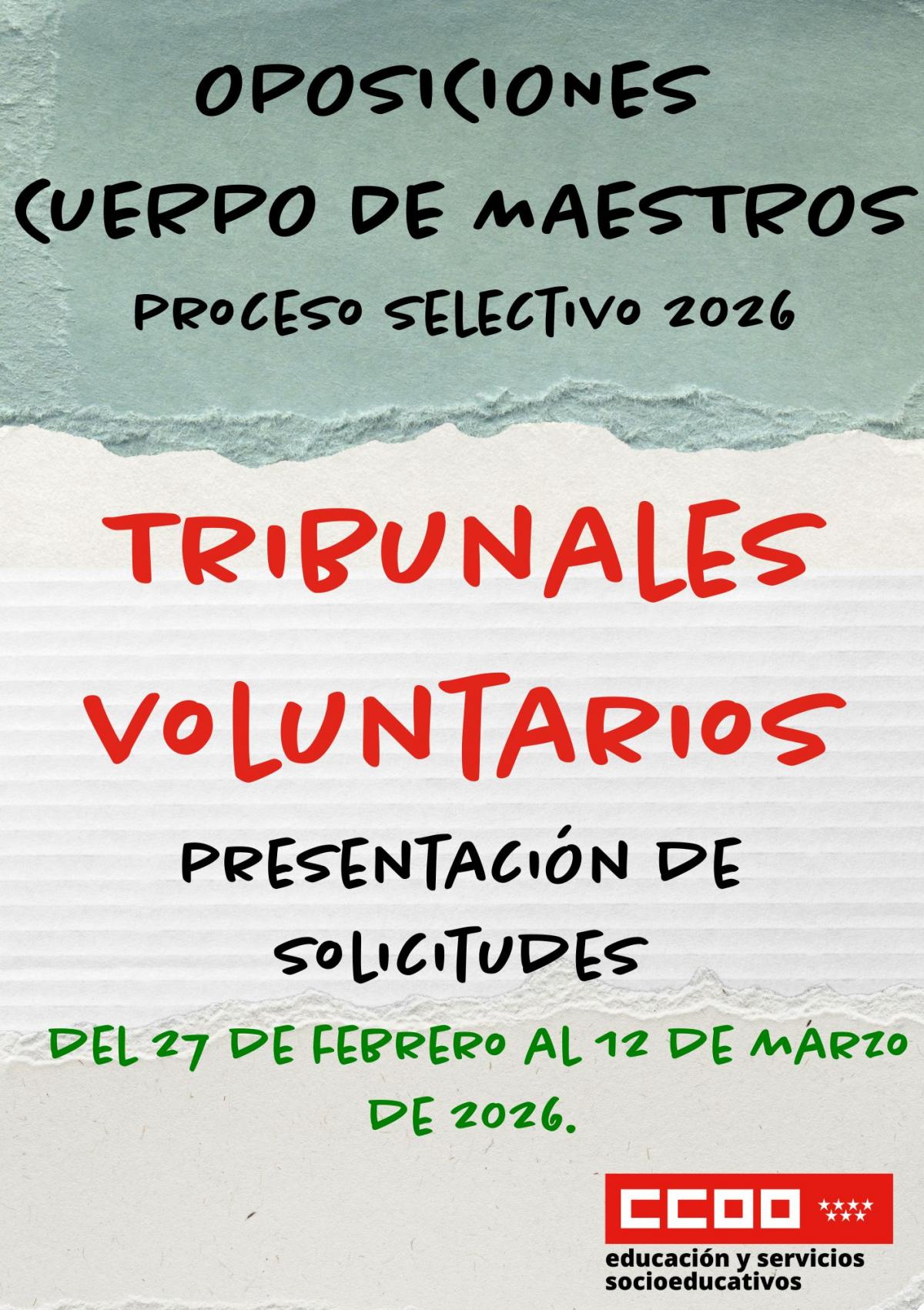 Se convoca procedimiento para la formación de listas de funcionarios docentes aspirantes a ser designados miembros voluntarios de los tribunales en los procesos selectivos del Cuerpo de Maestros convocados el 2 de febrero de 2026. (Resolución de 16 de febrero de 2026, publicada el 26 de febrero de 2026).