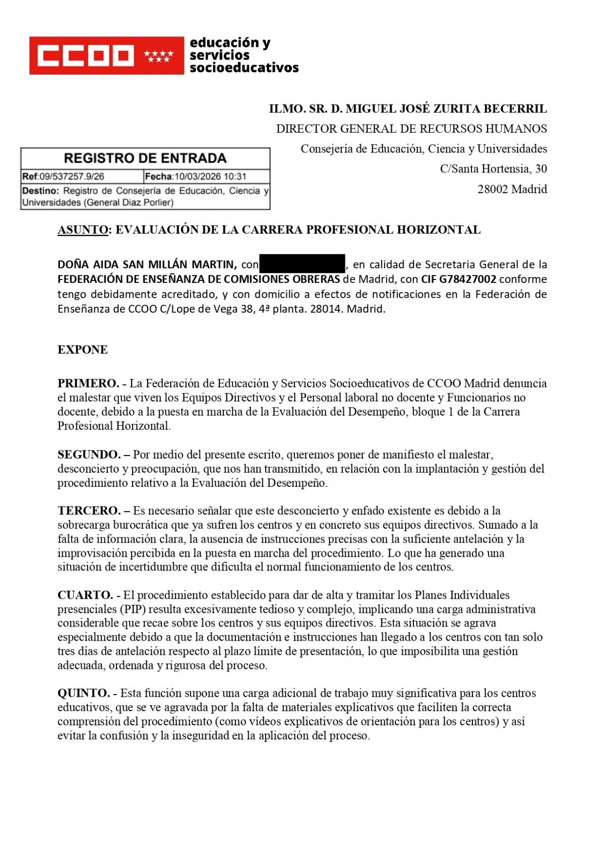 Desde la Federación de Educación y Servicios Socioeducativos de CCOO de Madrid, hemos registrado un escrito ante la Consejería de Educación para denunciar el profundo malestar que viven los equipos directivos y el personal laboral y funcionario no docente tras la puesta de la Evaluación del Desempeño (bloque 1 de la Carrera Profesional Horizontal) que viene marcada por la improvisación y la falta de respeto a los tiempos de los centros.