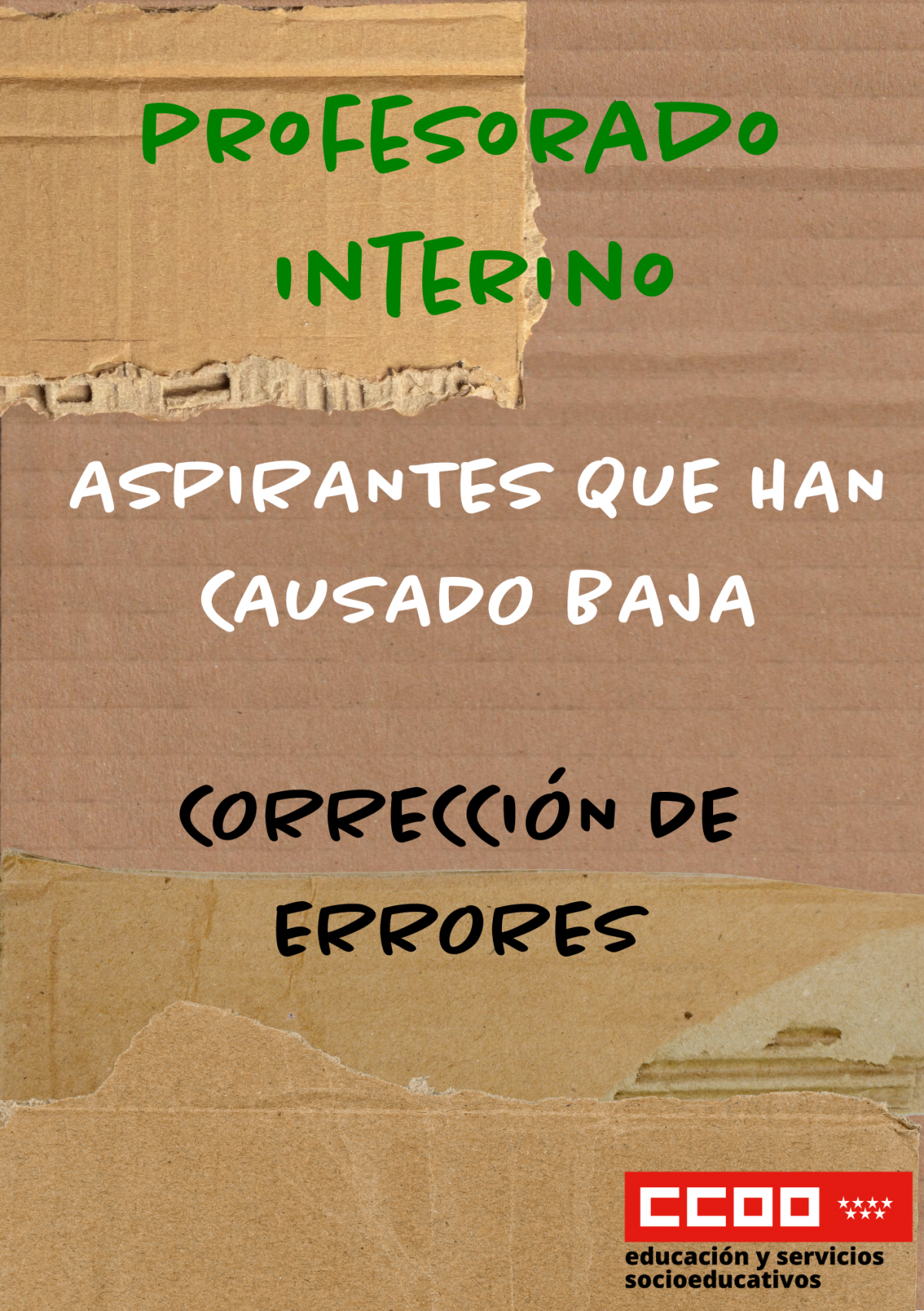 • Se publica corrección de errores en el listado definitivo de aspirantes a interinidad que han causado baja durante el presente curso escolar 2025-2026, hecho público por Resolución de la Dirección General de Recursos Humanos de 3 de noviembre y 1 de diciembre de 2025.