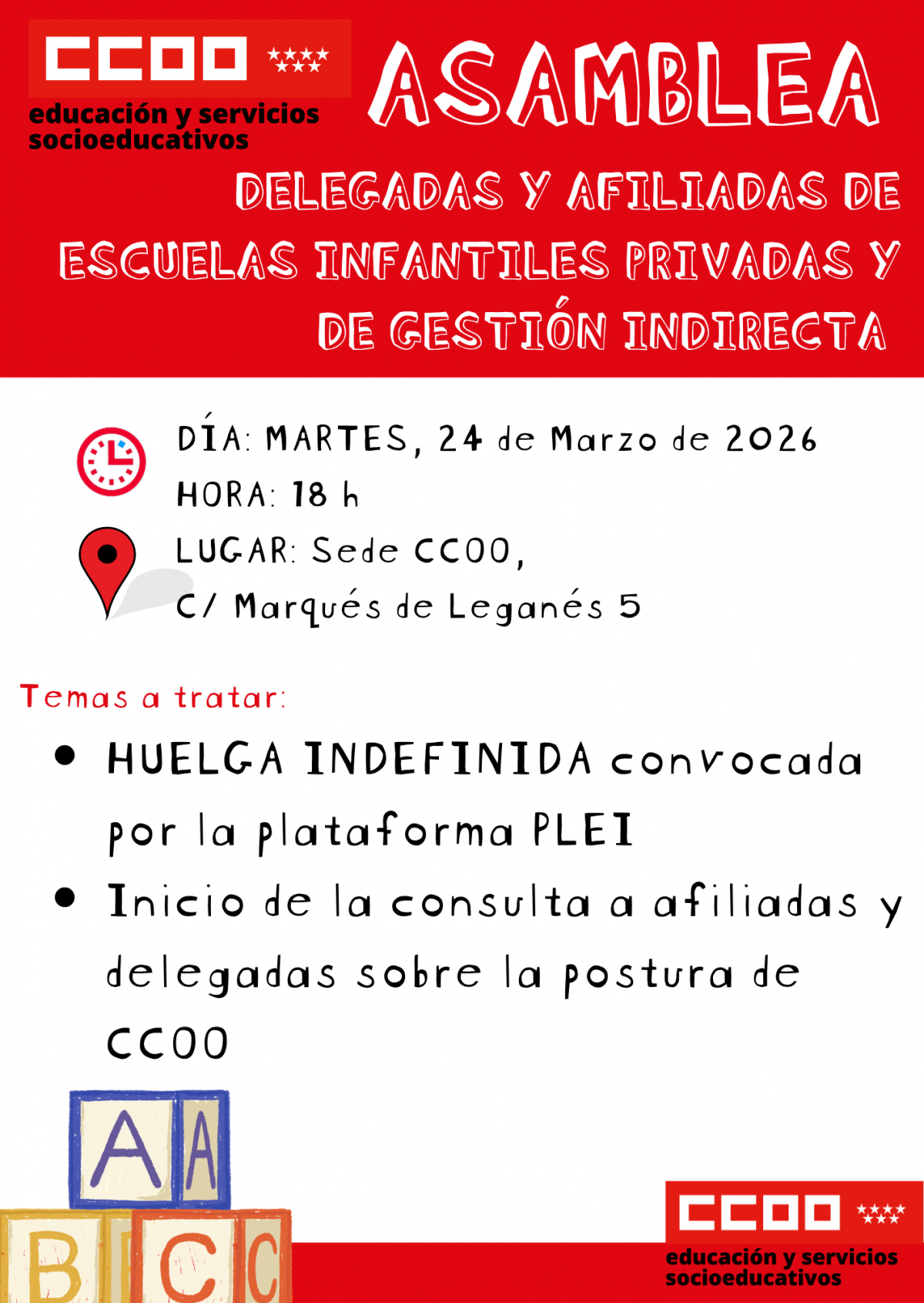 Federación de Educación y Servicios Socioeducativos de CCOO de Madrid | 20 marzo 2026.