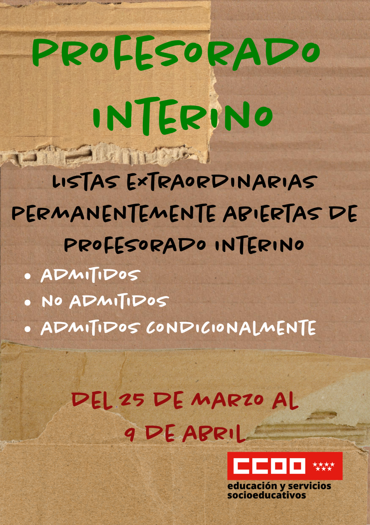 Listas extraordinarias de interinos permanentemente abiertas. Listas de admitidos y no admitidos.