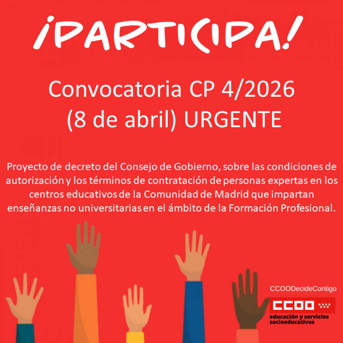 Convocatoria CP 4/2026 (8 de abril) URGENTE