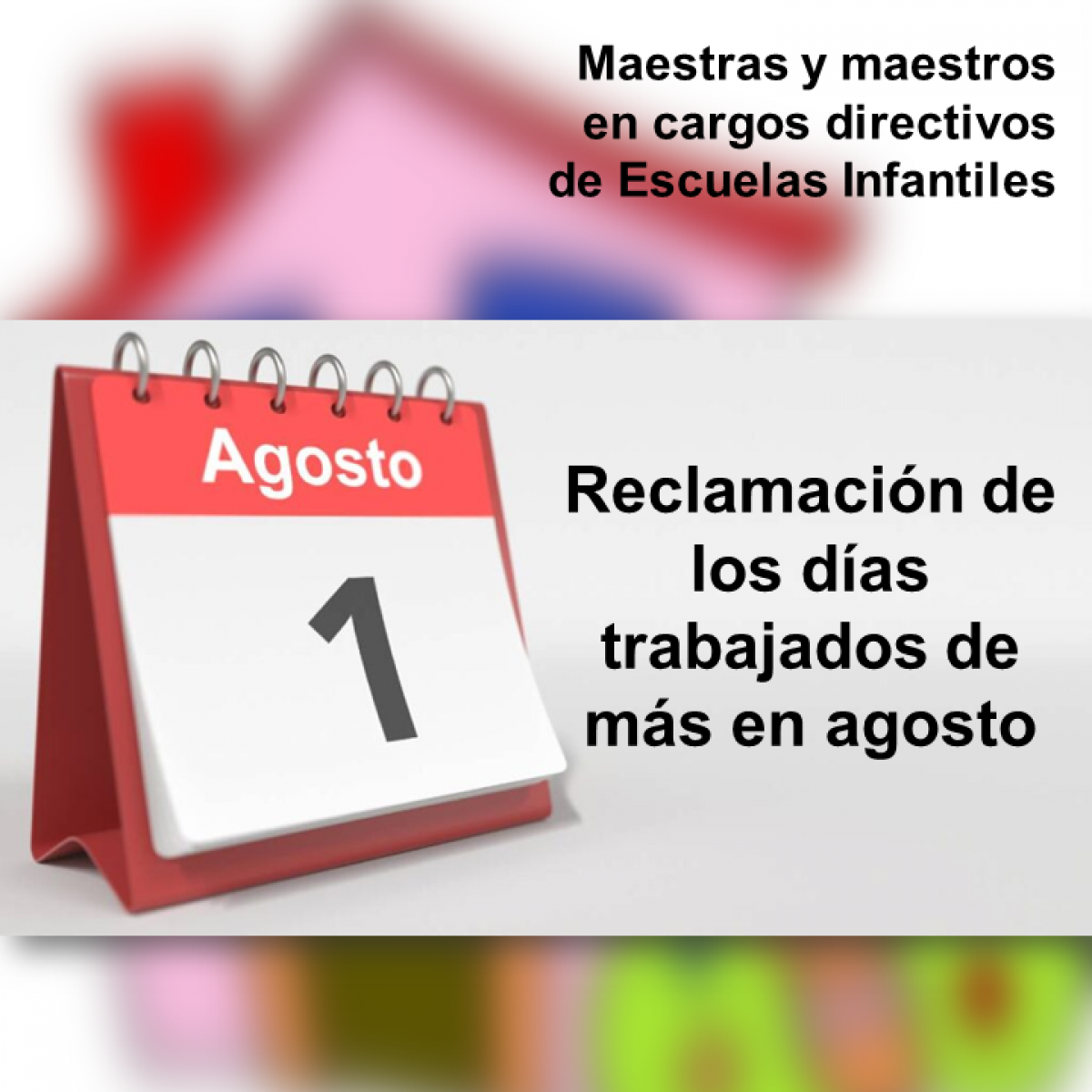Maestras y maestros en cargos directivos de Escuelas Infantiles: reclamad los días trabajados de más en agosto