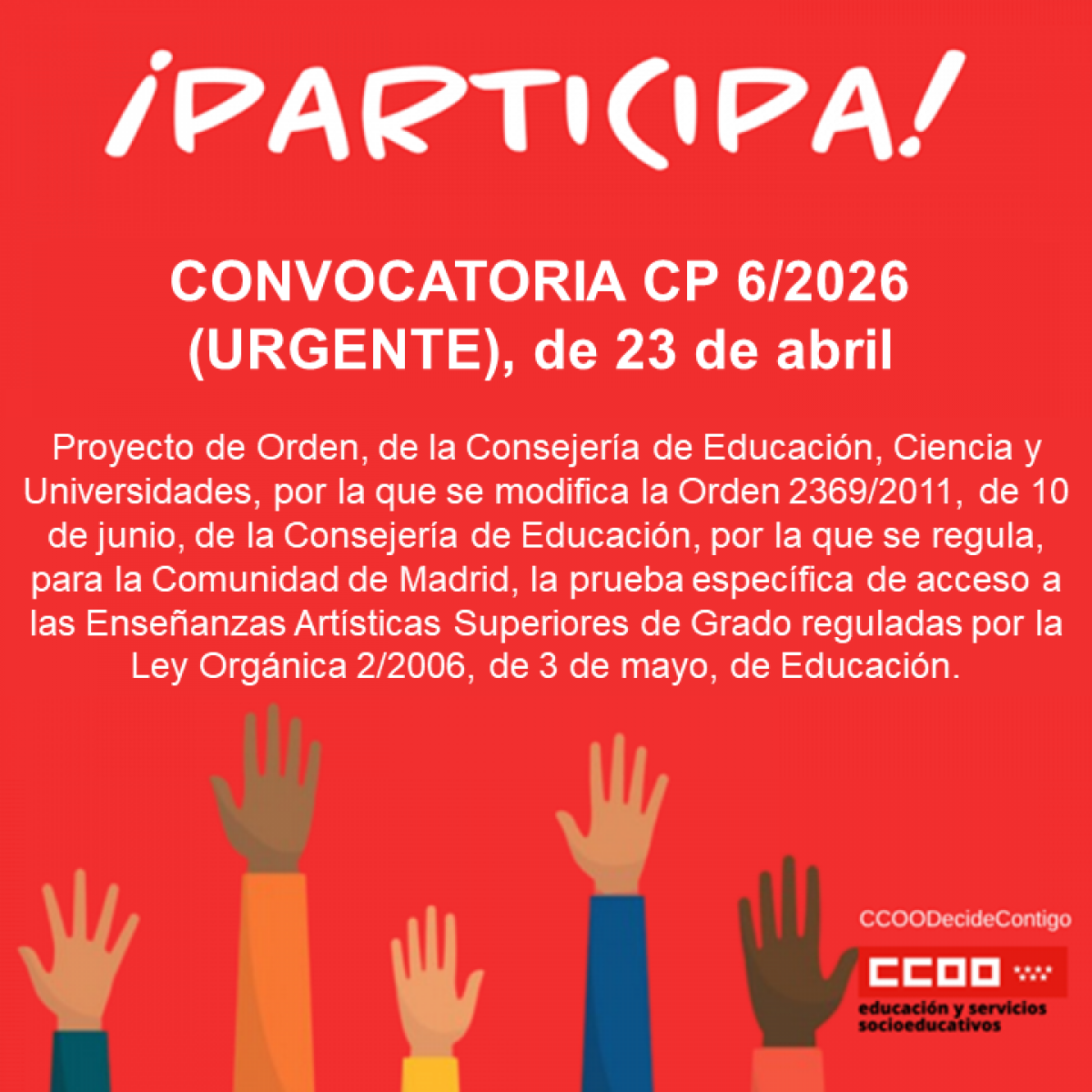 CONVOCATORIA CP 6/2026 (URGENTE), de 23 de abril