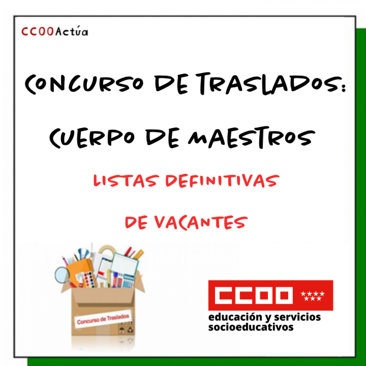 Concurso de traslados del Cuerpo de Maestros. Listas definitivas de vacantes.