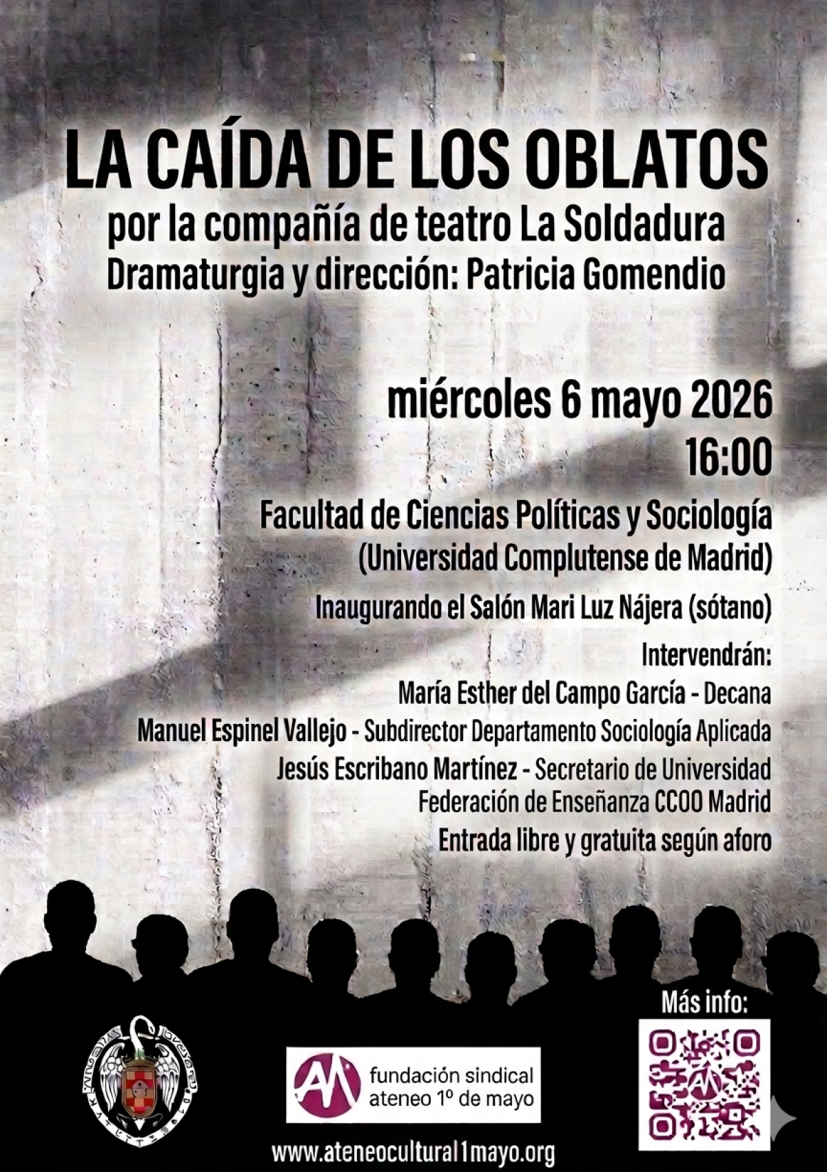 Tras desarrollar una investigación y una dramaturgia basada en documentos, testimonios, entrevistas, noticias y hechos acontecidos antes, durante y después del Proceso 1001, La Soldadura (compañía de teatro de la Fundación Sindical Ateneo 1º de Mayo, de CCOO Madrid) vuelve a llevar a la escena su creación de teatro documental La caída de los oblatos, que tiene como objetivo visibilizar, recordar y transmitir cómo diez sindicalistas terminaron por convertirse en “los diez de Carabanchel”.