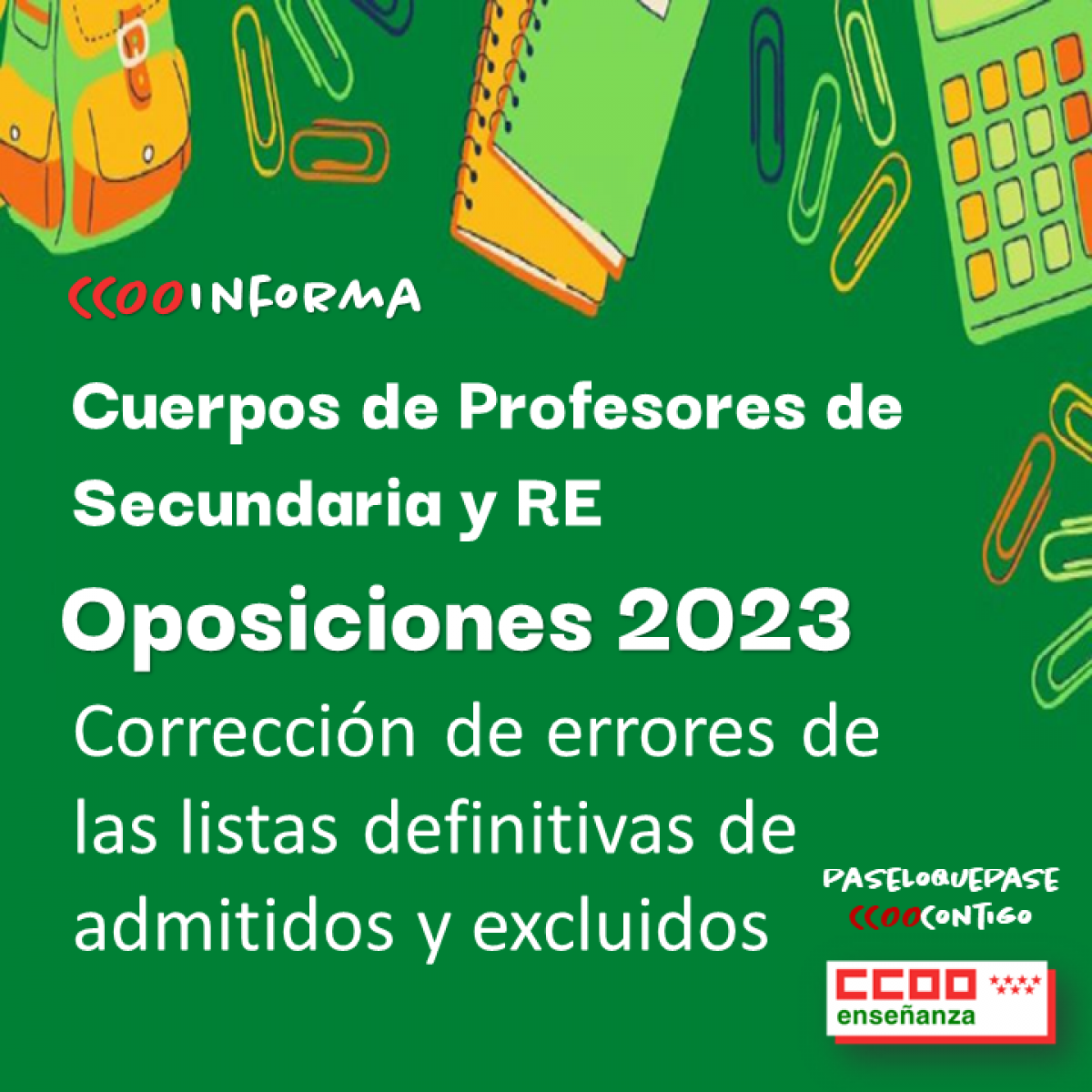 Procedimiento selectivo para ingreso y accesos a los Cuerpos de Profesores de Secundaria y RE. Corrección de errores de las listas definitivas de admitidos y excluidos.